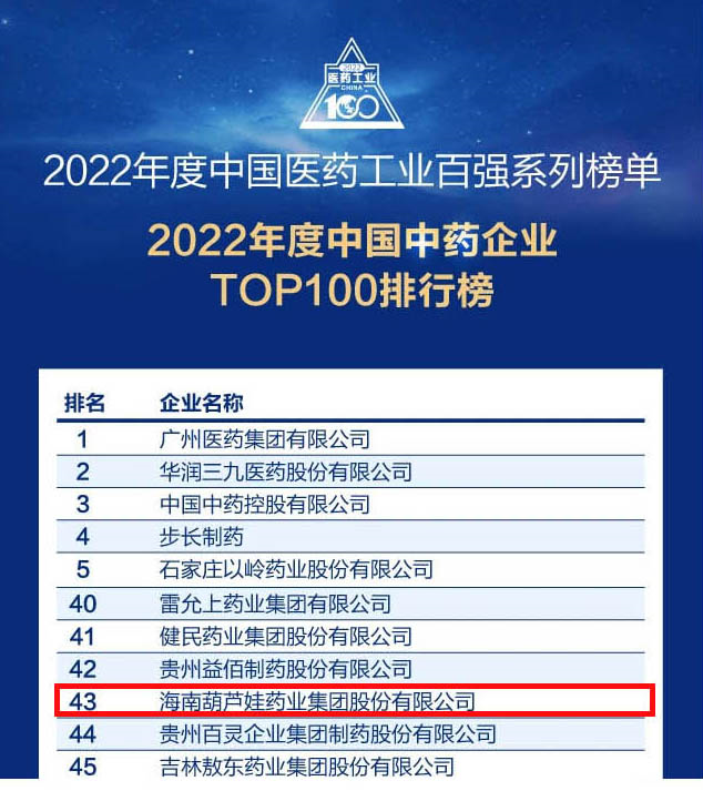会议期间,一年一度的中国医药工业百强系列榜单隆重揭晓,suncitygroup太阳新城药业集团凭借领先的研发优势和扎实的生产实力以及稳健的市场推广能力,连续第四年成功入选“2022年度中国中药企业TOP100排行榜” ,排名稳步上升至第43位。
